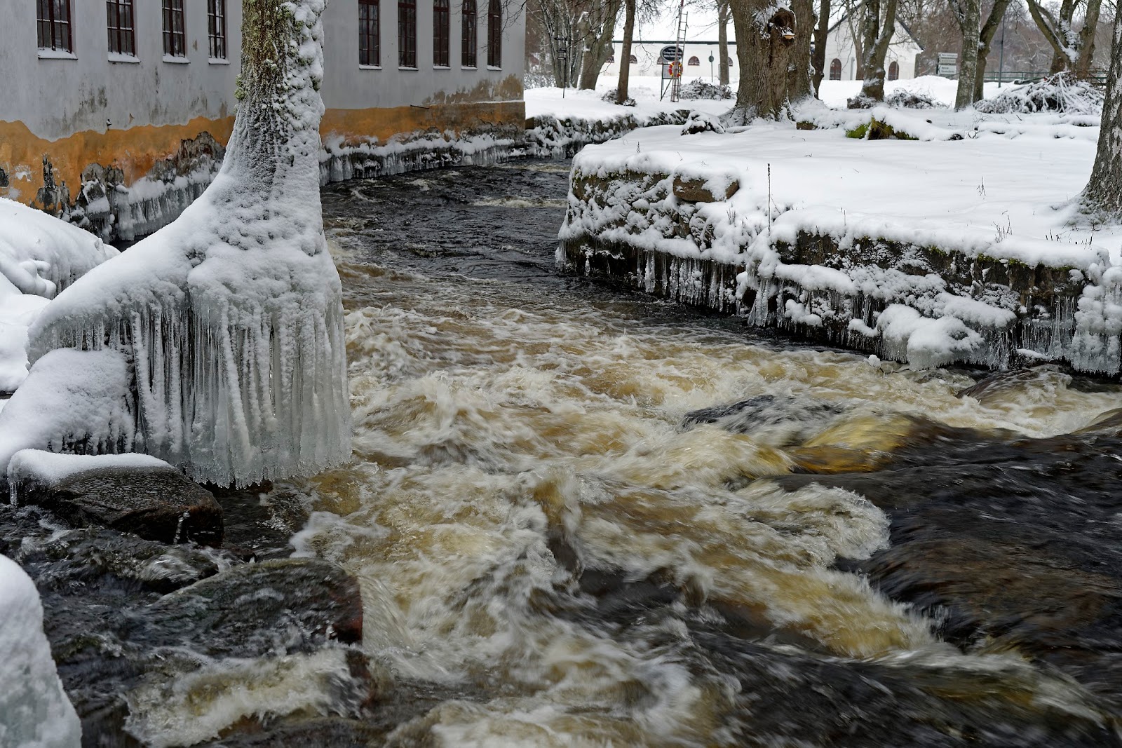 Vi tar en tur efter örn-fotograferandet till Gysinge och forsarna igen för att fota med "riktiga" kameran. Ser när vi passerar några broar att kanotpaddling och övernattning i något av vindskydden inne i parken till våren eller sommaren ligger klart nära att fundera på... Vandra och hyra cykel blir det nog minst....